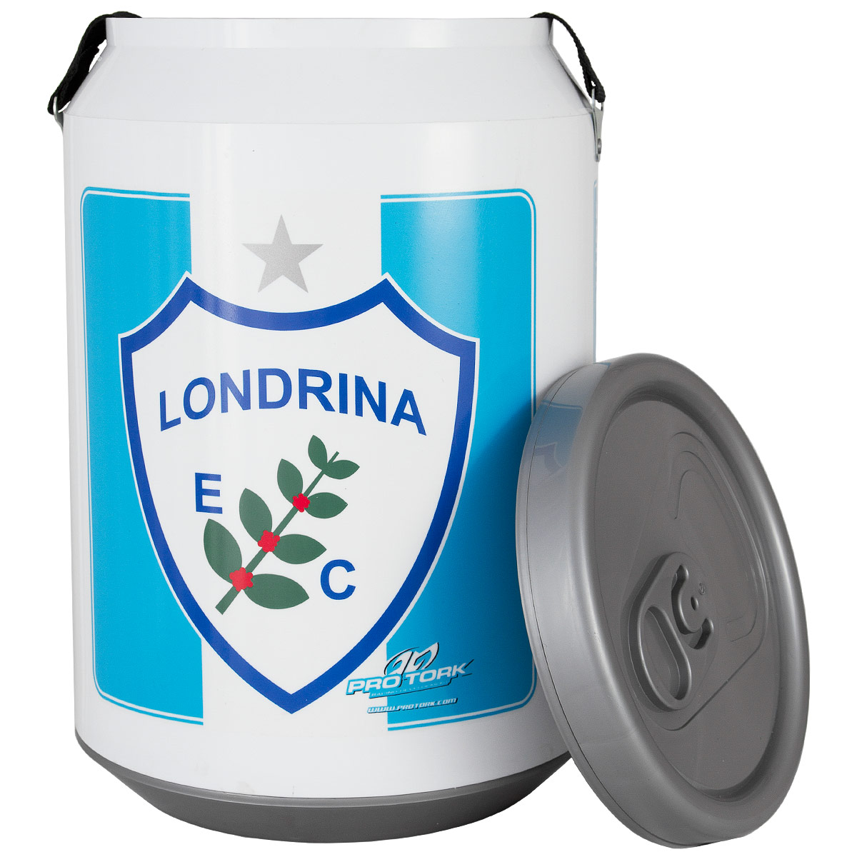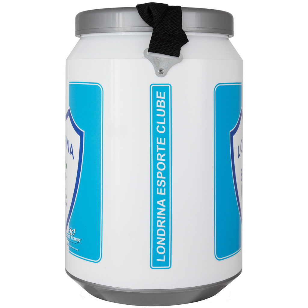 Cooler Térmico Pro Tork é um recipiente para gelar bebidas, feito em polietileno de alta densidade com revestimento em poliuretano e EPS, em formato de lata de cerveja/refrigerante. Com capacidade para 24 latas, com alças para transporte em nylon de 40mm.